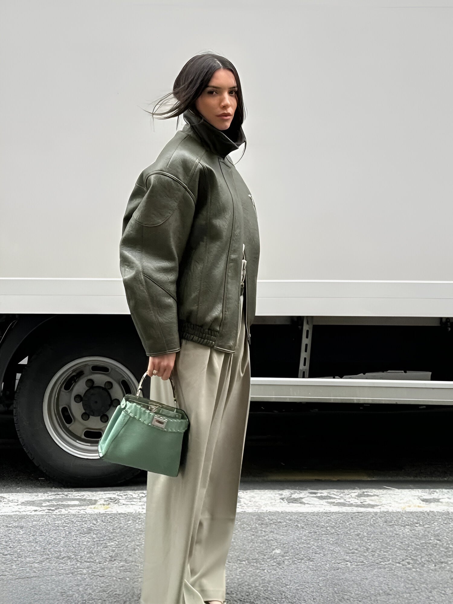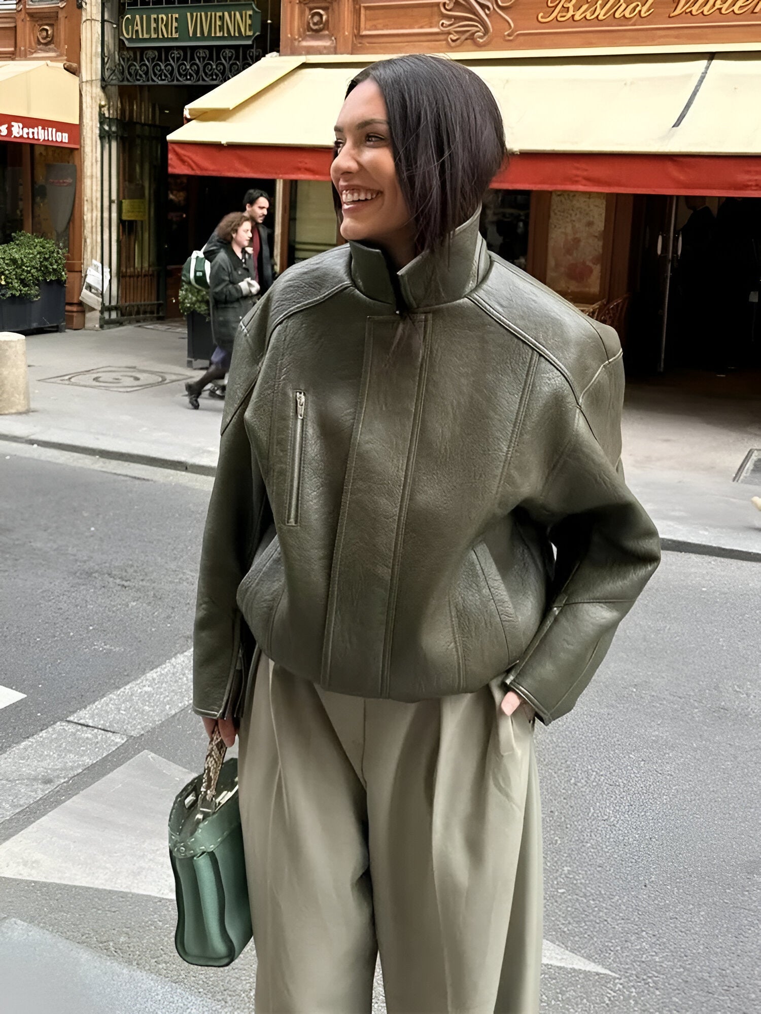 De Sienna vintage leren herfstjas ademt karakter en verfijnde klasse. Met zijn oversized pasvorm en rijke leertextuur straalt deze jas een tijdloze, retro-geïnspireerde luxe uit. Het minimalistische design en de subtiele details maken dit een iconisch stuk dat je look direct een unieke signatuur geeft.