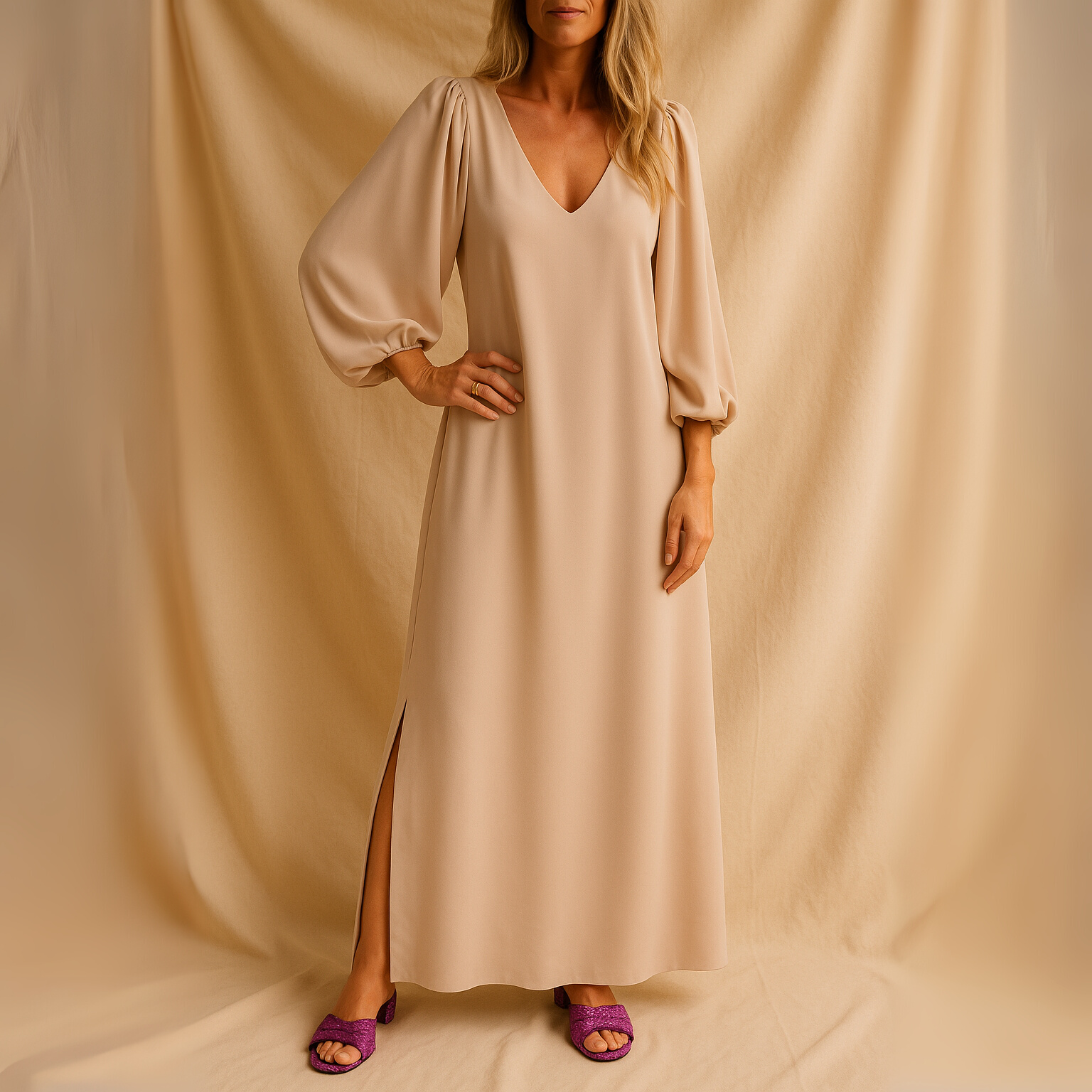 Voel je als een koningin in de avondjurk Léontine. Deze jurk straalt elegantie en luxe uit – perfect voor bals, diners of een onvergetelijke avond.