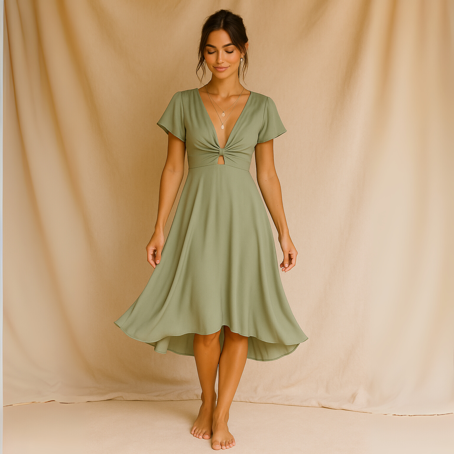 De Liora-jurk is een zomerfavoriet. Hij is licht, vrolijk en veelzijdig – ideaal voor een dagje op het terras of een ontspannen wandeling langs het strand.