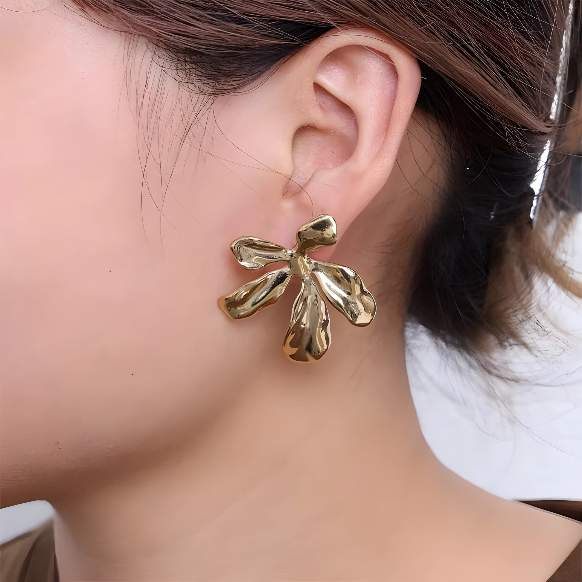 Deze sculpturale, bloemvormige oorbellen zijn een echte blikvanger. Ze zijn elegant, modern en perfect voor een unieke look.