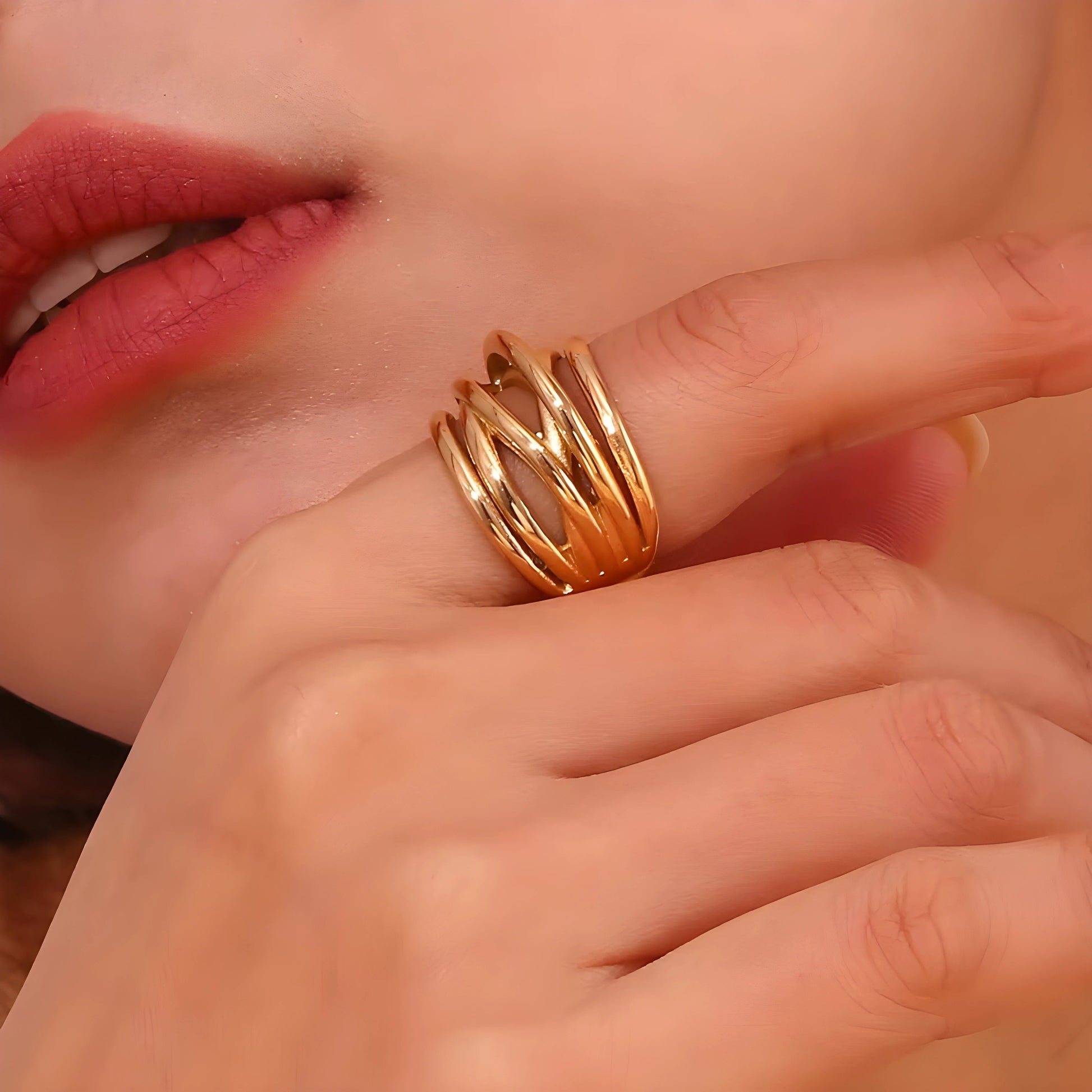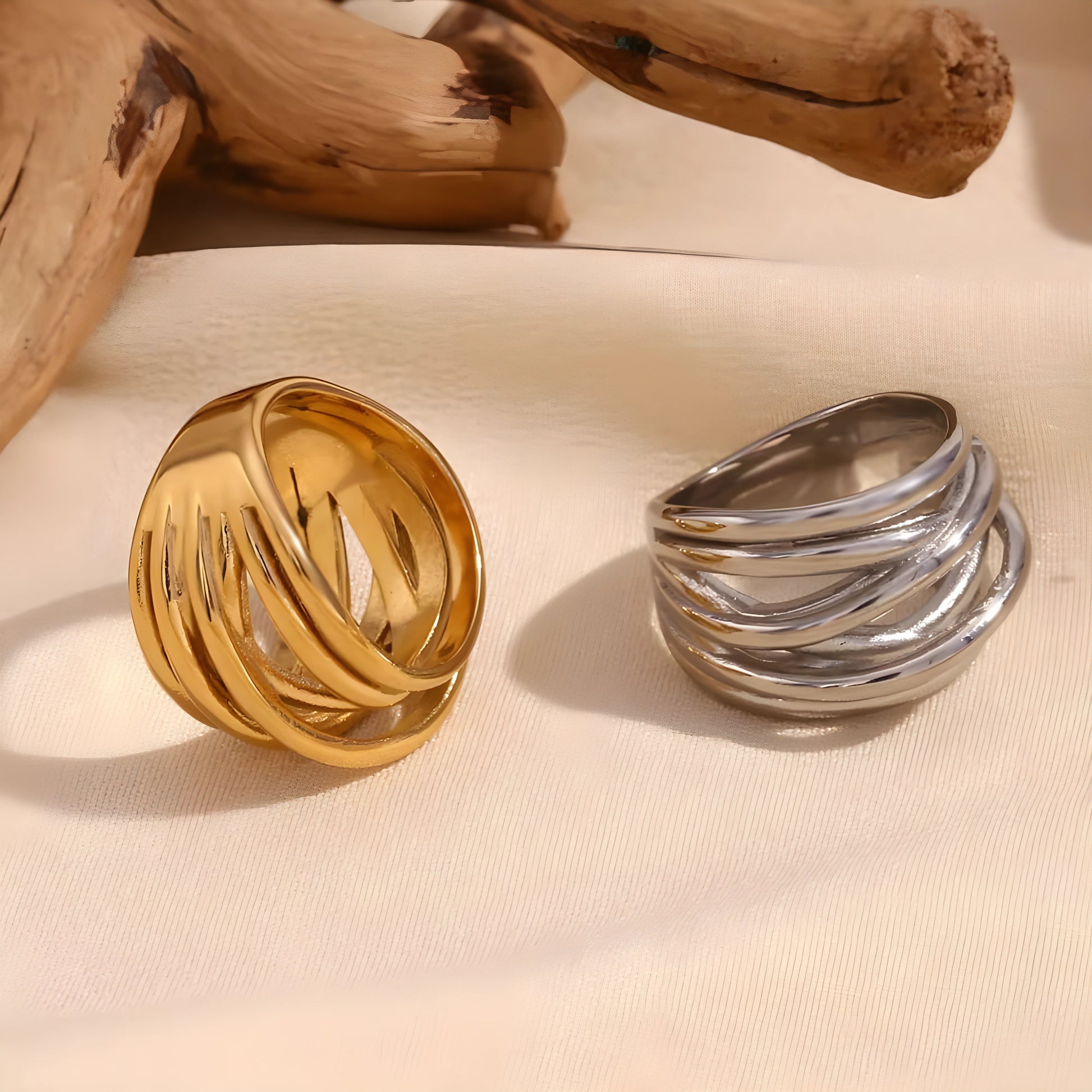 Het gelaagde, speelse ontwerp maakt de Auriane ring modern en stijlvol. Verkrijgbaar in verschillende maten, ideaal voor dagelijks gebruik.
