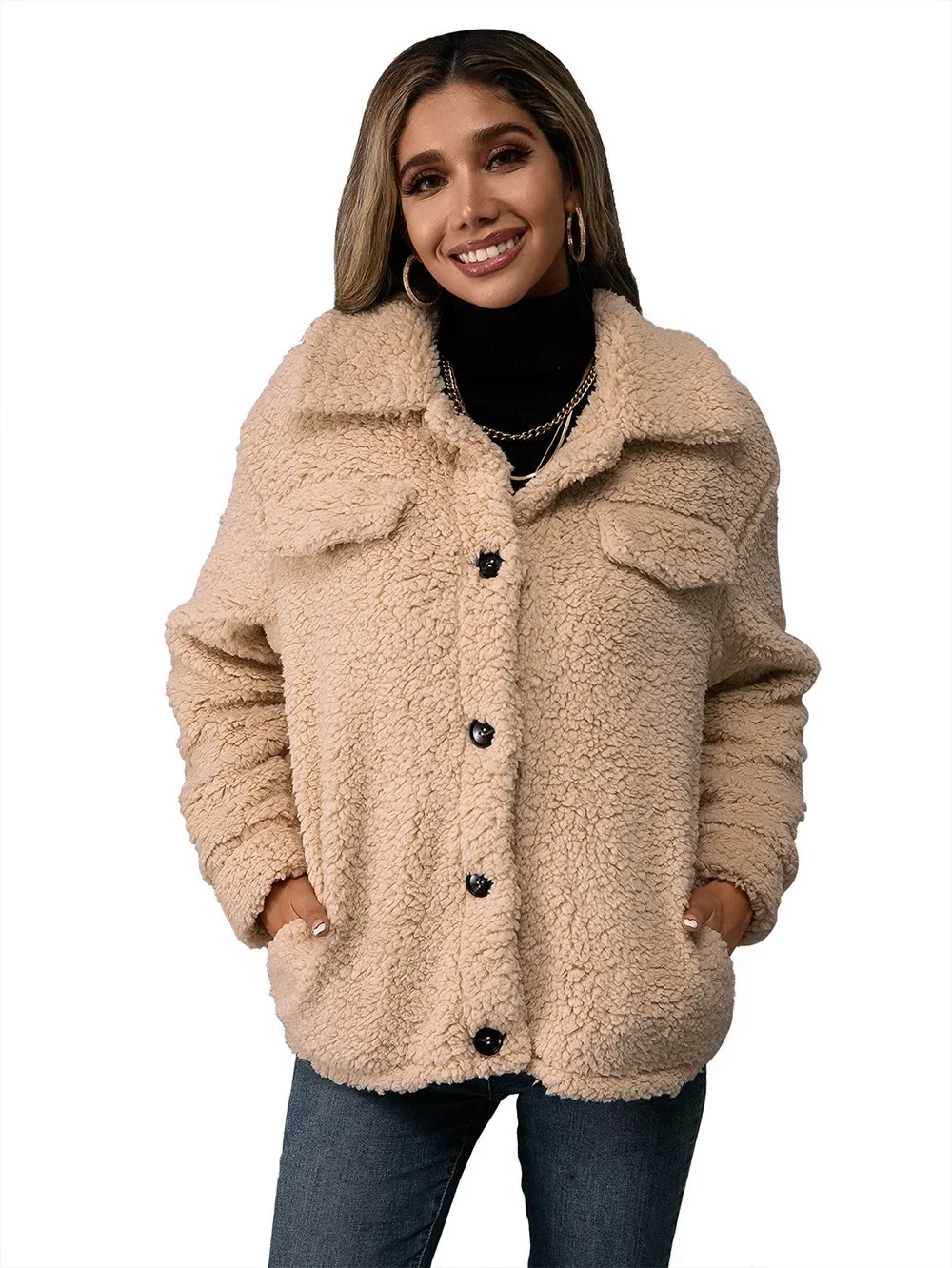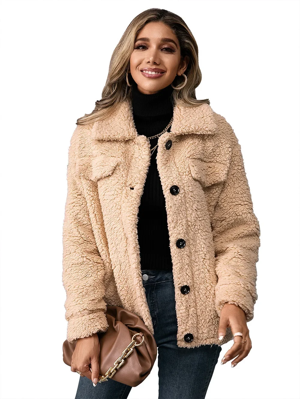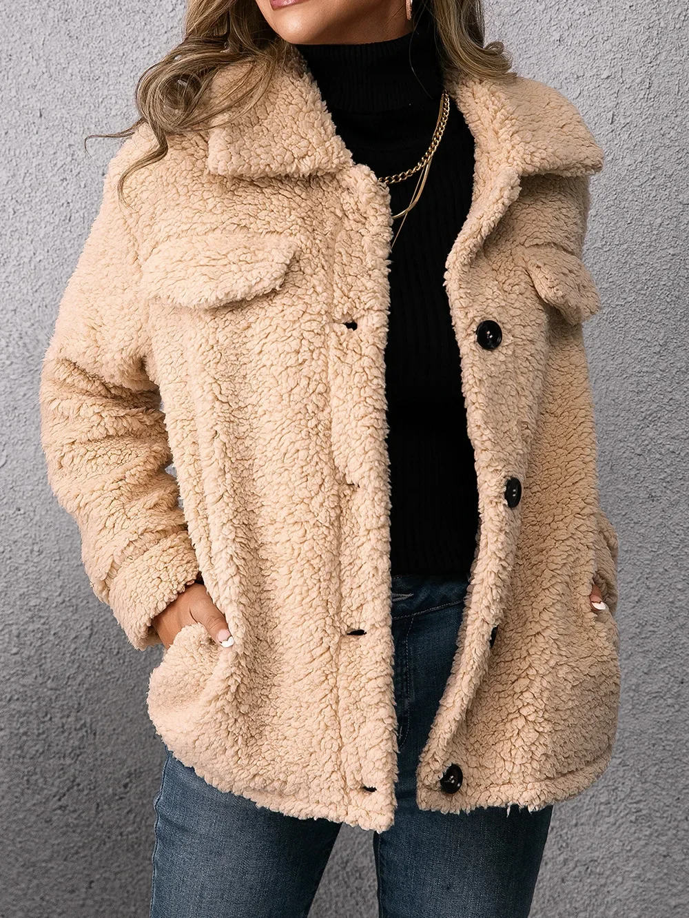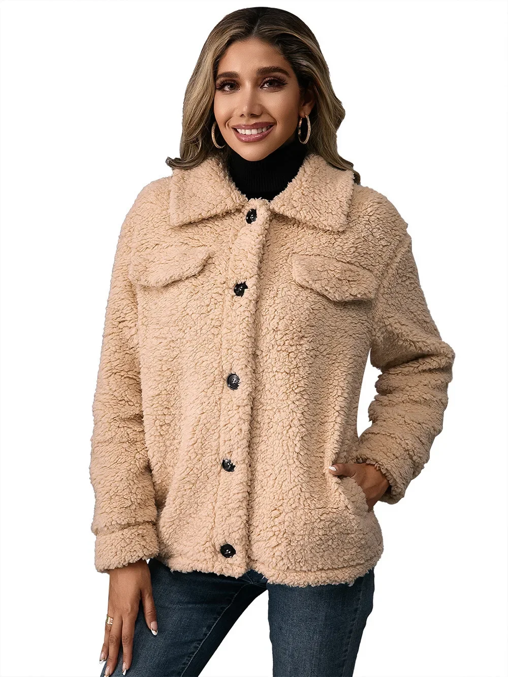 • Losvallend ontwerp:Het Amazon Loose Casual Revers-pluchejack heeft een comfortabele, losse pasvorm, perfect voor dagelijks gebruik.