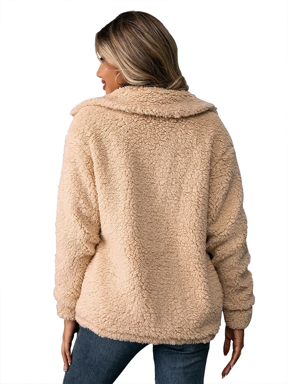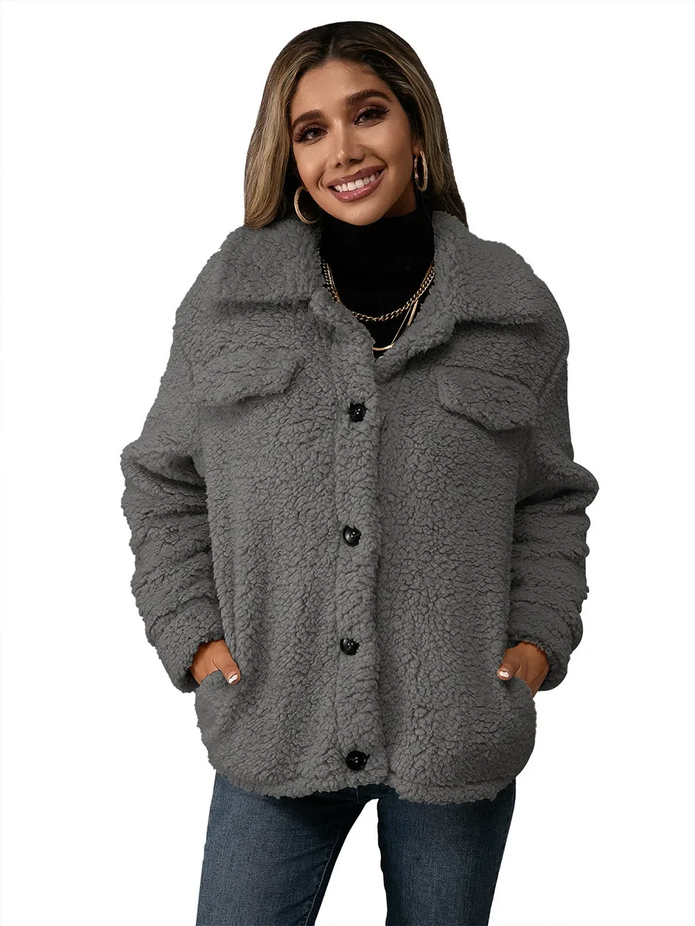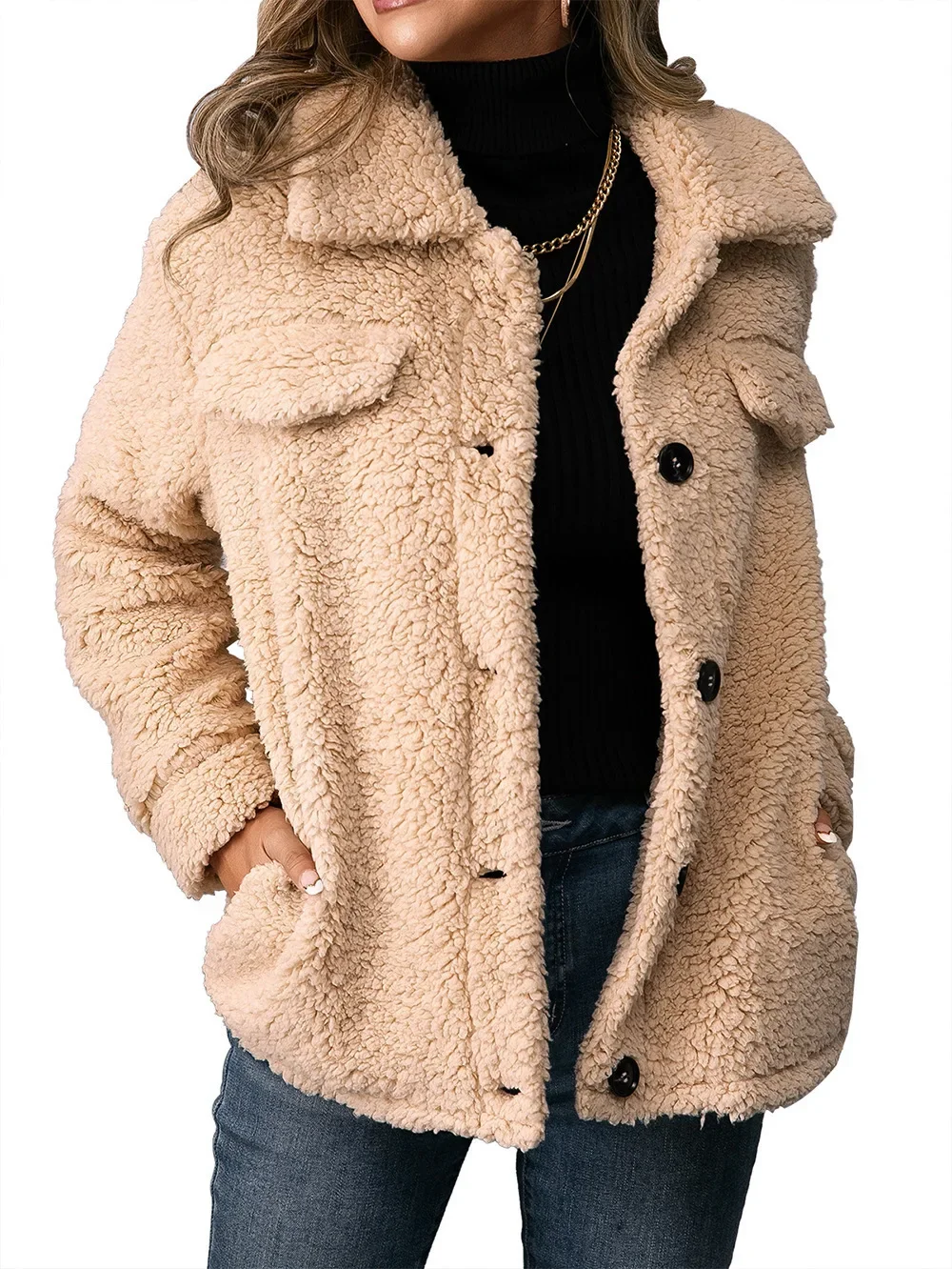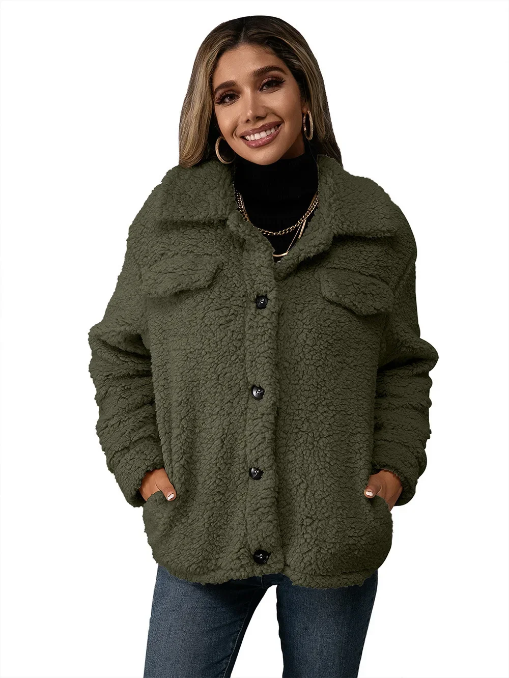• Losvallend ontwerp:Het Amazon Loose Casual Revers-pluchejack heeft een comfortabele, losse pasvorm, perfect voor dagelijks gebruik.