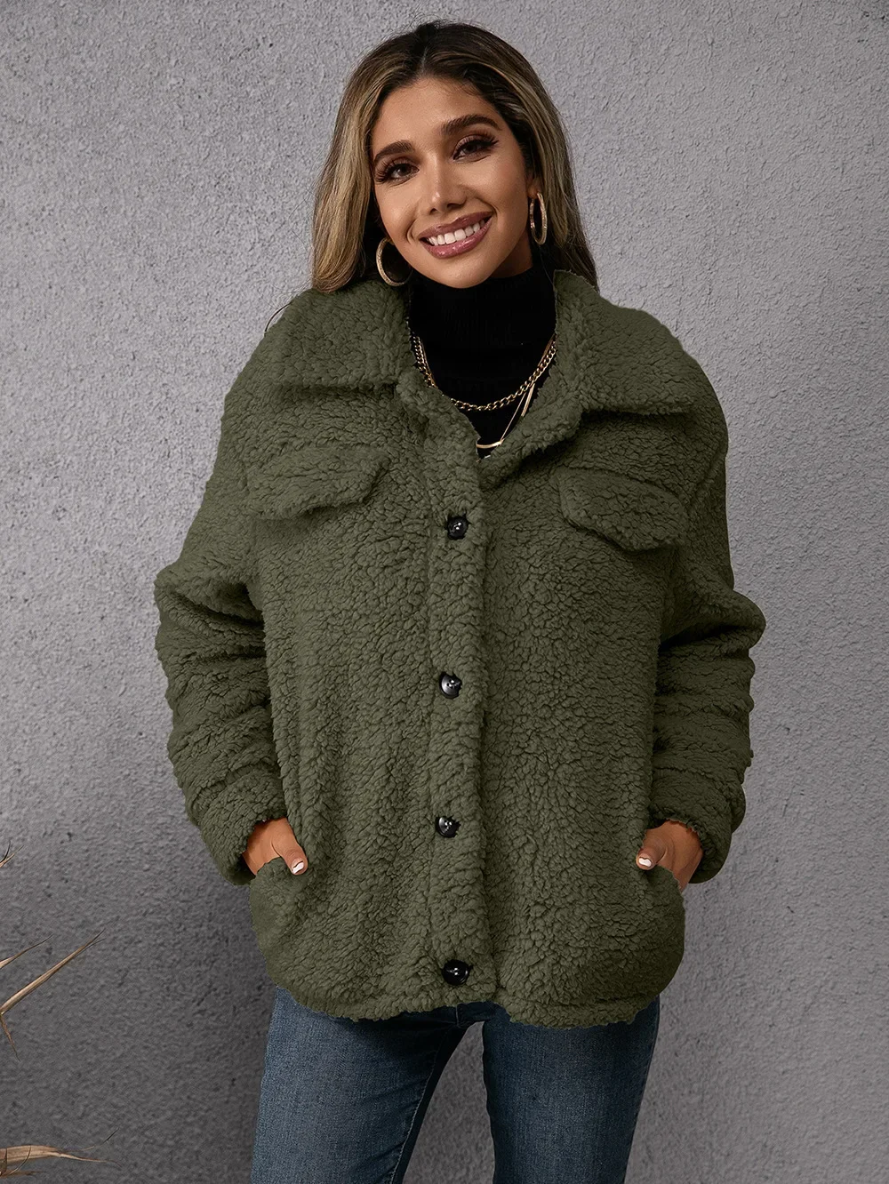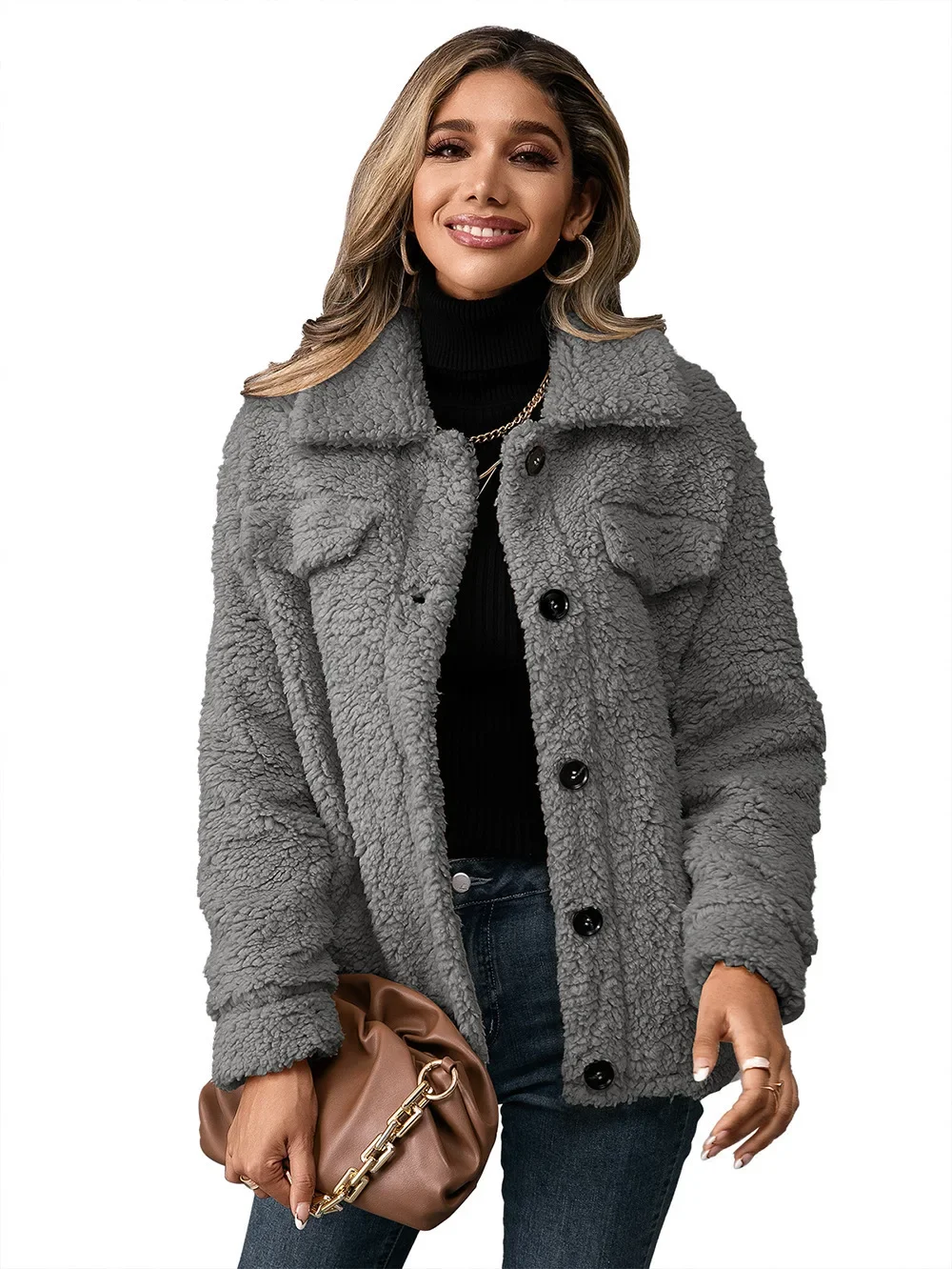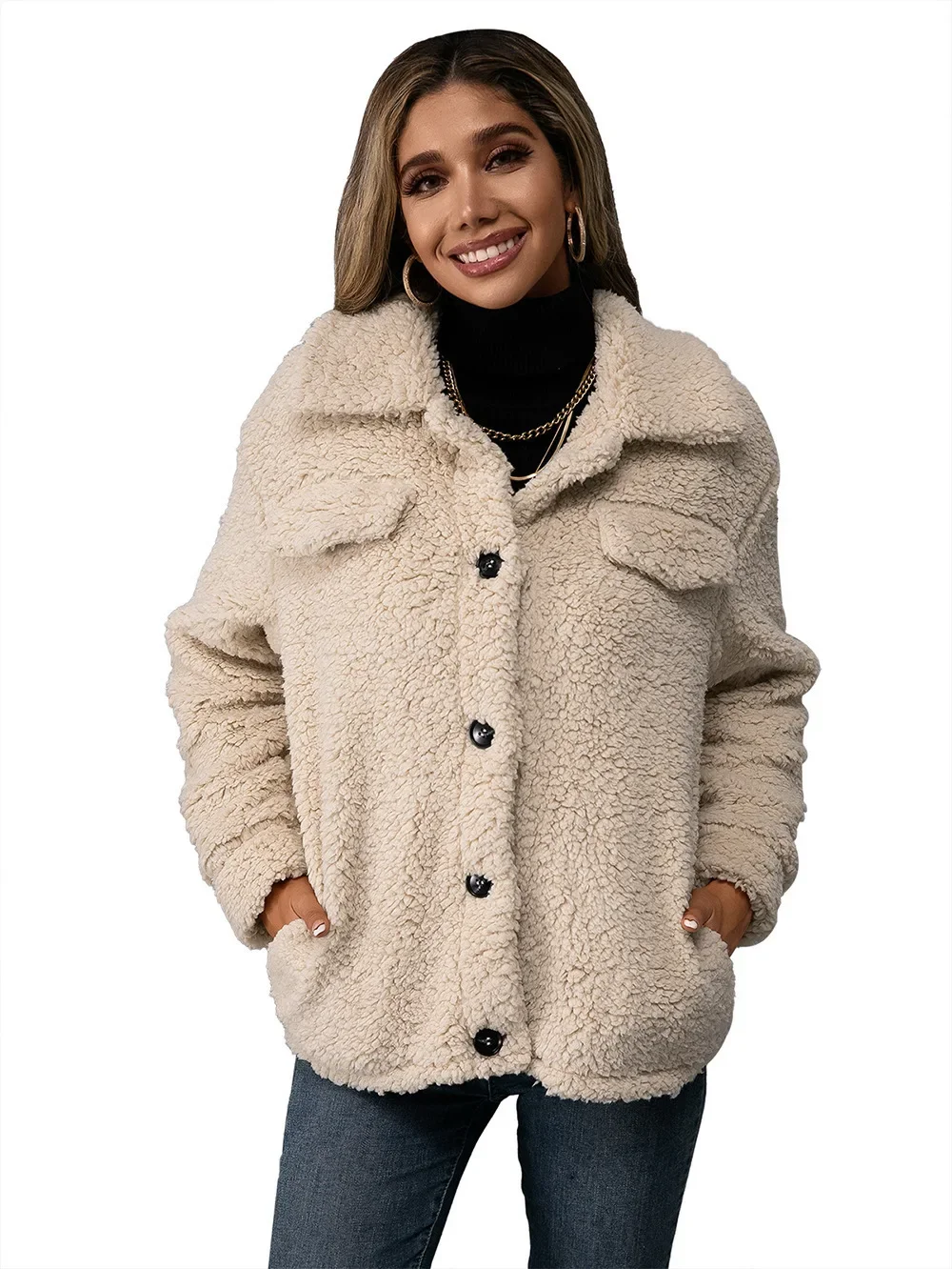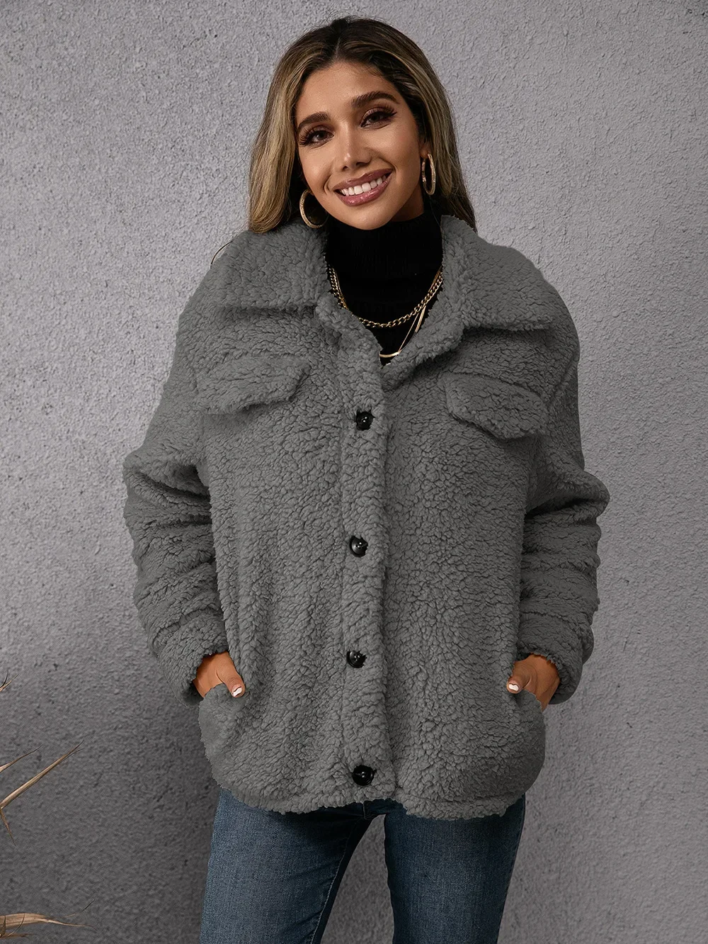 • Losvallend ontwerp:Het Amazon Loose Casual Revers-pluchejack heeft een comfortabele, losse pasvorm, perfect voor dagelijks gebruik.