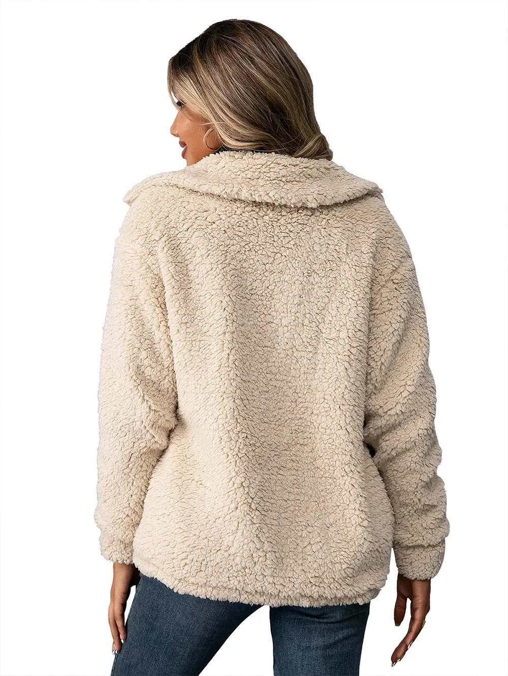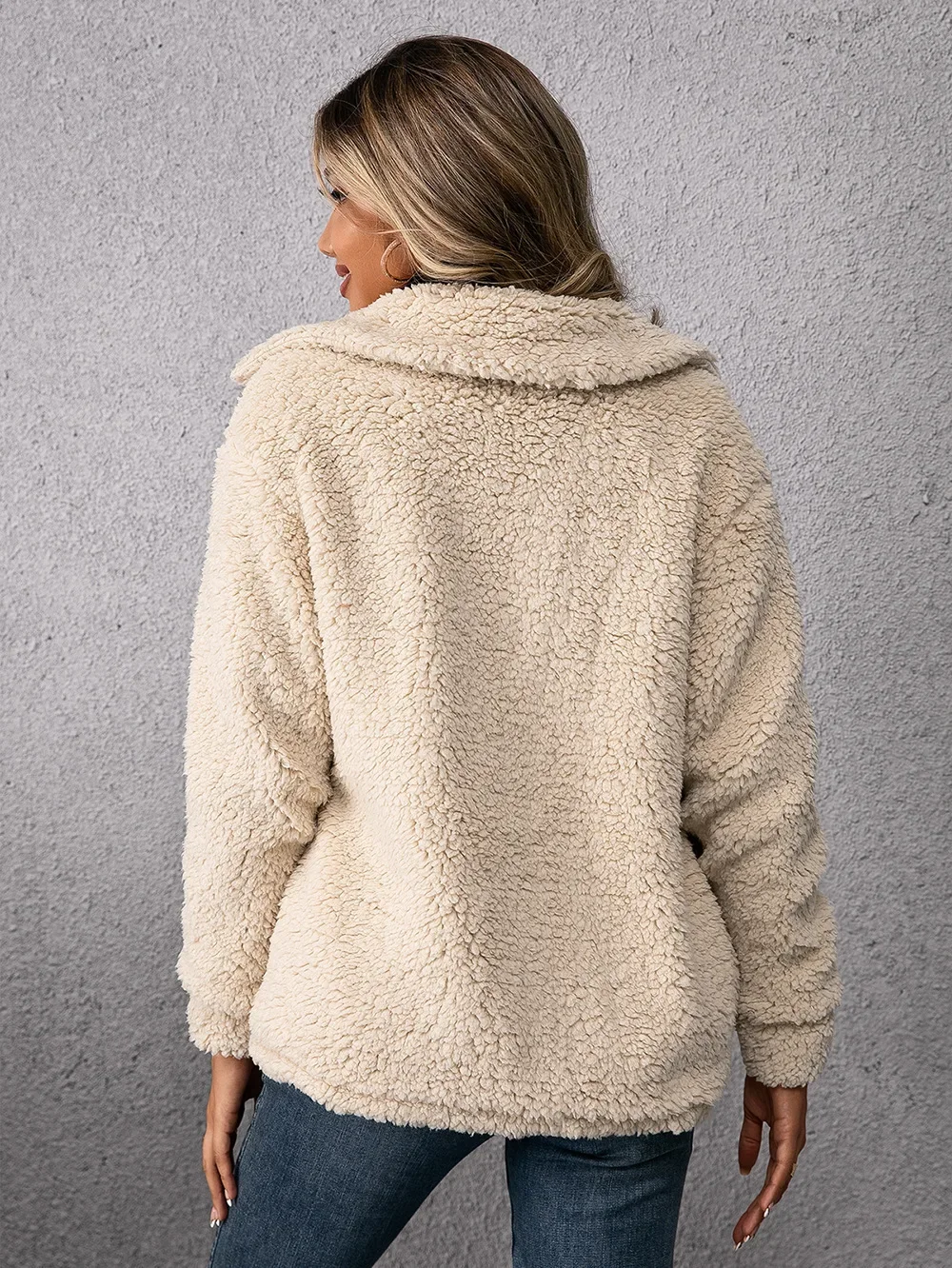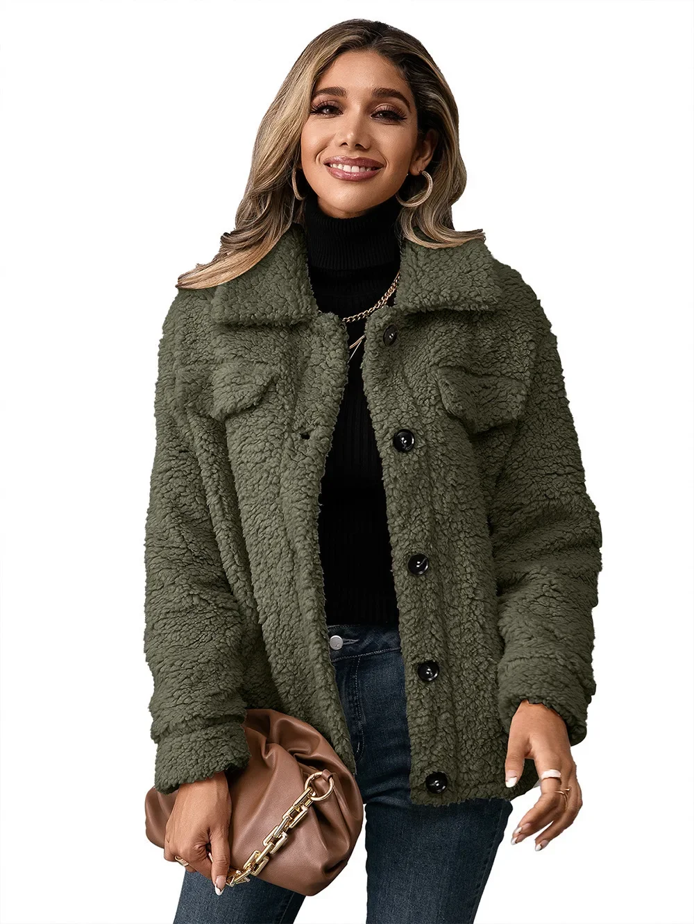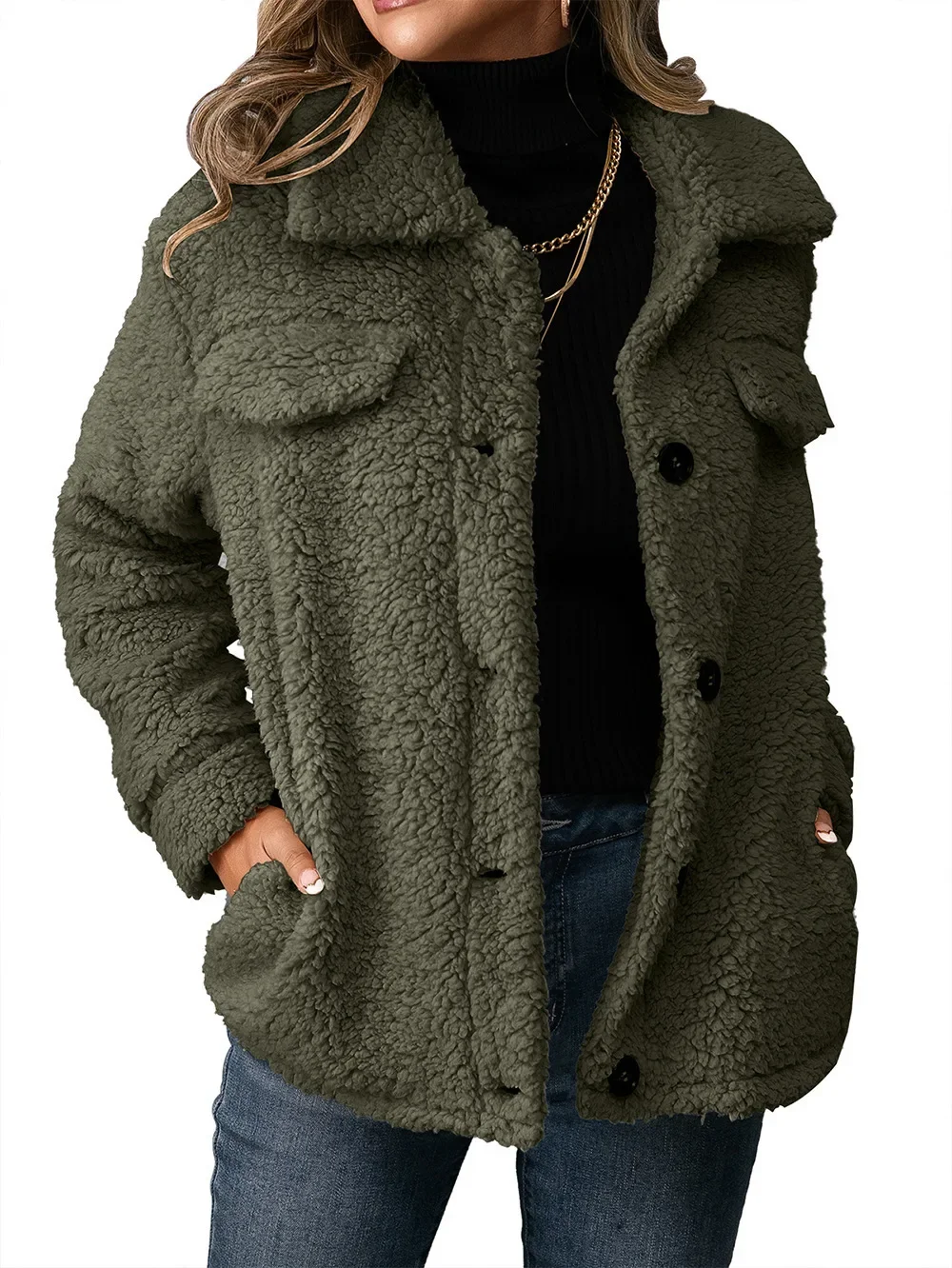 • Losvallend ontwerp:Het Amazon Loose Casual Revers-pluchejack heeft een comfortabele, losse pasvorm, perfect voor dagelijks gebruik.