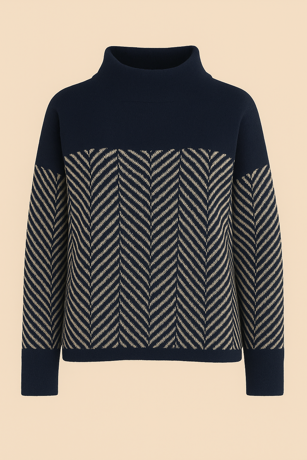 Deze trui heeft een opvallend visgraatmotief dat een unieke touch geeft aan je koude-weeroutfits. Combineer hem met je favoriete broek of rok voor een chique en verfijnde outfit die verfijning uitstraalt.