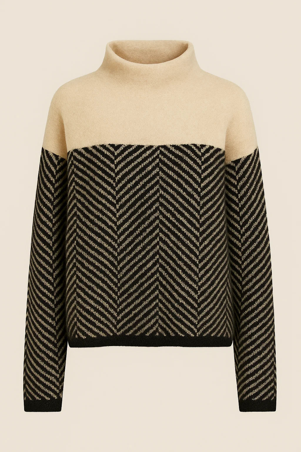 Met de hoge halslijn die je warm houdt en de verlaagde schouders voor een relaxte pasvorm, is hij goed te combineren met een broek of rok. Vernieuw je herfstgarderobe en maak een sterke indruk, waar je ook gaat.