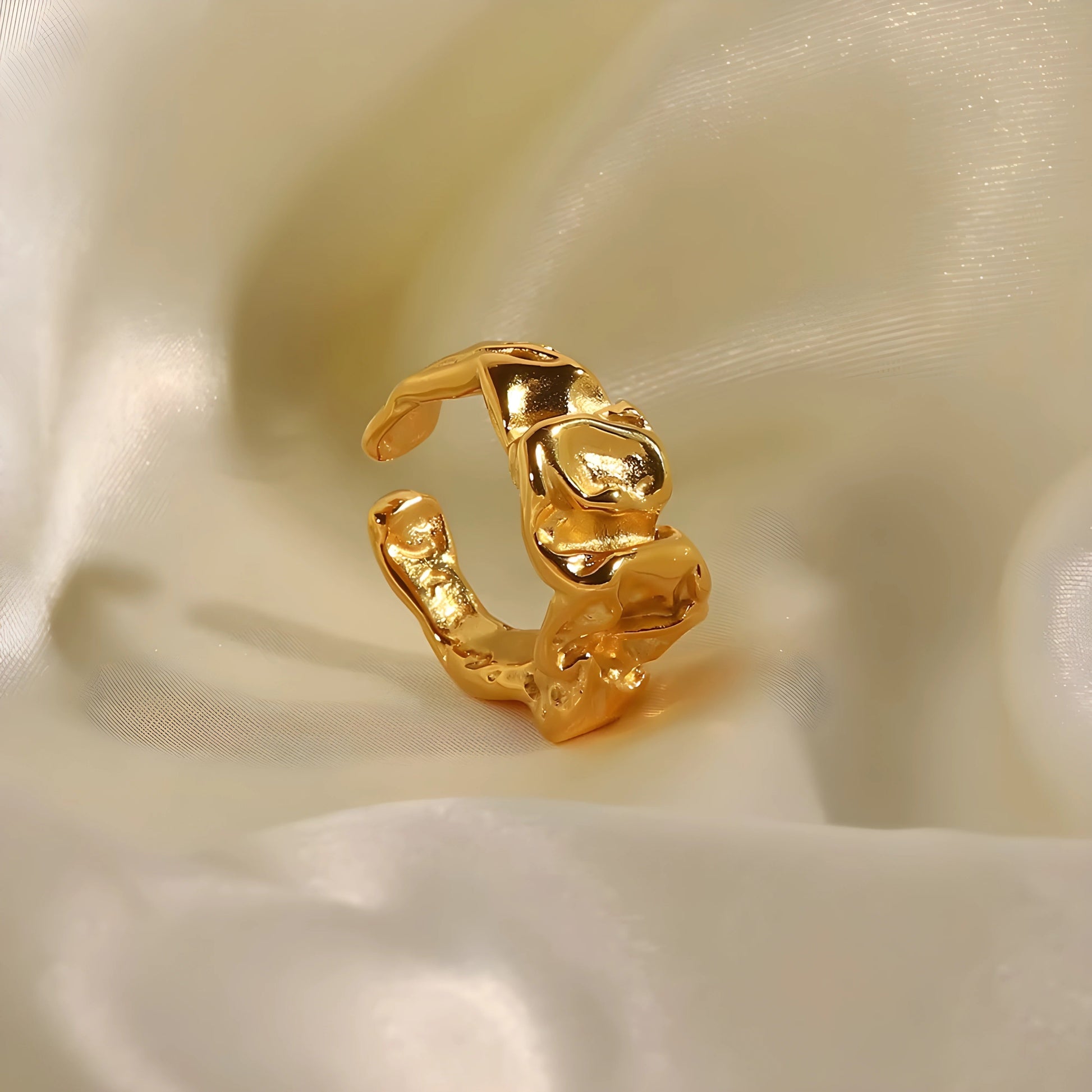 Het rauwe ontwerp van de Nolwenn-ring wordt gecompleteerd door luxueus vakmanschap. Een unieke look die tegelijkertijd kracht en verfijning uitstraalt.