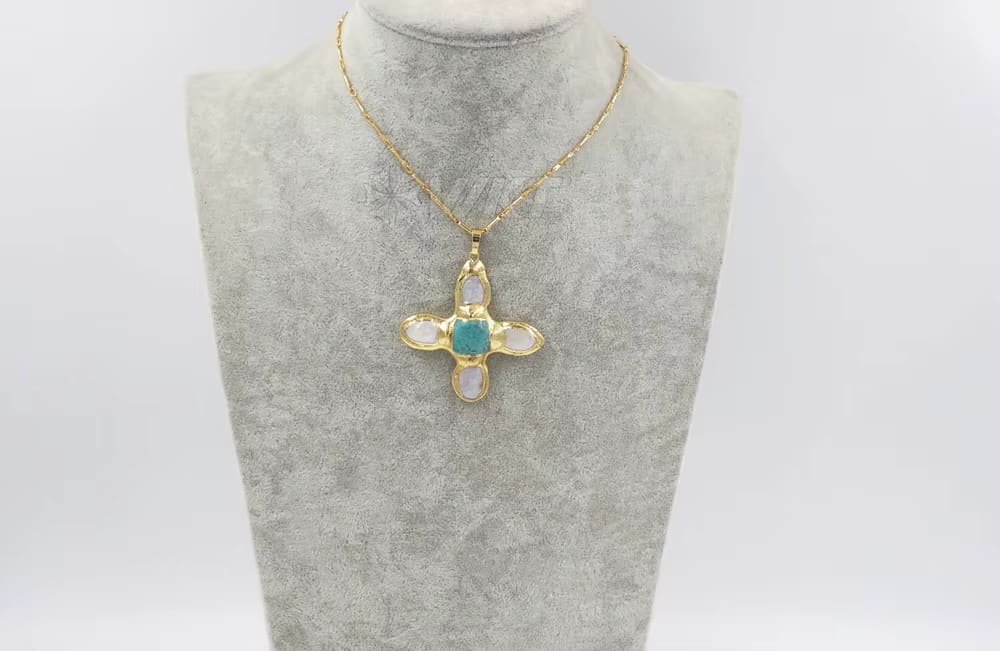 De Anaëlle-ketting combineert spiritualiteit en luxe. De kruisvormige edelstenen maken het een sieraad dat kracht en elegantie uitstraalt.
